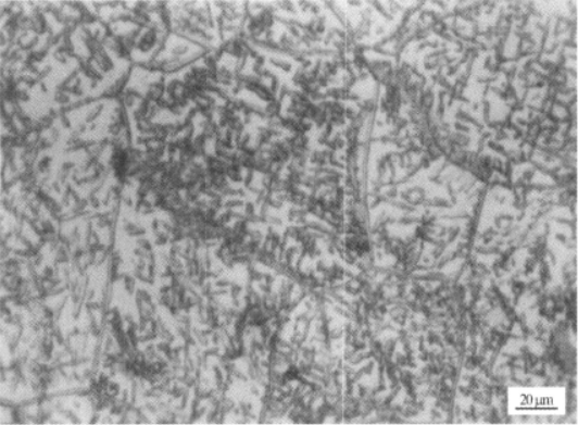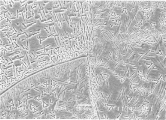 圖3-49 Ti1300合金β相區固溶+時效組織:針狀次生α(亮條)在β基體上析出