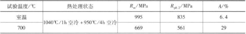 表3-8 Ti1300合金小規格棒材典型力學性能