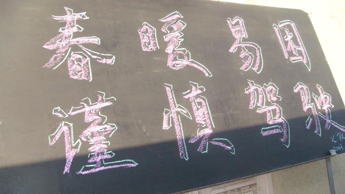 3月初,公交公司汽車七隊利用安全宣傳專欄和黑板報等多種形式在車隊內(nèi)手寫張貼“春暖易困、謹慎駕駛”、“安全在你腳下,生命在你手中”等警示標語,并在每一位駕駛員出車前進行有針對性的安全叮囑,讓駕駛員增強安全意識,規(guī)范駕駛行為,時刻繃緊安全這根弦,確保行車安全。
