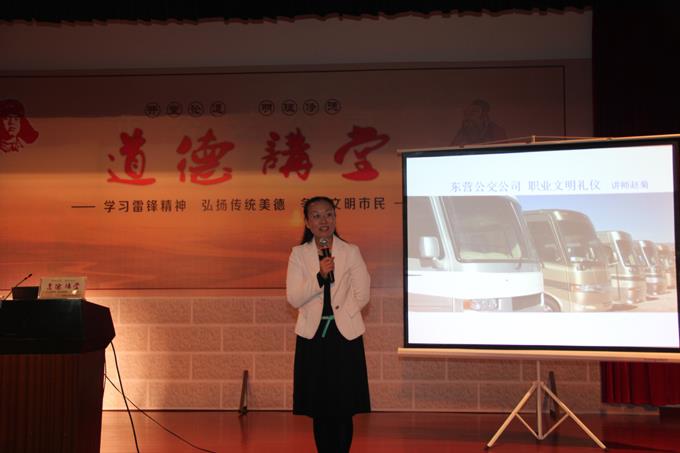 2013年9月27日晚,市公交公司第九場道德講堂活動在公司南會議室舉行,此次活動按照自我反省、唱歌曲、學模范、誦經(jīng)典、發(fā)善心、送吉祥、做點評七個規(guī)定環(huán)節(jié)進行。公司特別邀請上海富禮德禮儀服務(wù)有限公司高級禮儀講師趙菊為大家做“職業(yè)文明禮儀”的講座。趙老師的演講,深入淺出,結(jié)合實際,讓我們受益匪淺。在今后的工作生活中我們必定更加“懂禮、知禮、用禮、善禮”,為廣大市民提供更加優(yōu)質(zhì)的服務(wù)。活動結(jié)束時每個人還領(lǐng)到了印有“二十四孝”的公交道德講堂折扇。