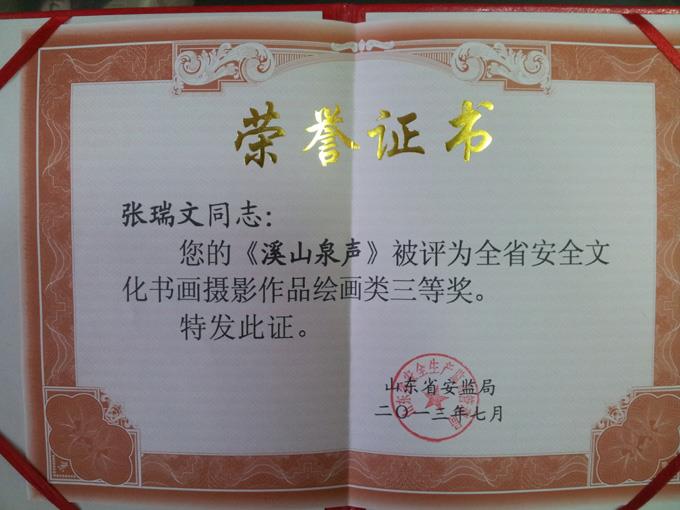 近日,剛剛揭曉的東營市安全文化書畫攝影作品有獎(jiǎng)?wù)骷顒?dòng)中,市公交公司廣告部張瑞文的繪畫作品《溪山泉聲》以其豐富的表現(xiàn)力和感染力,獲得三等獎(jiǎng),此作品同時(shí)參加山東省安全文化書畫攝影有獎(jiǎng)評比活動(dòng),亦獲得三等獎(jiǎng)。