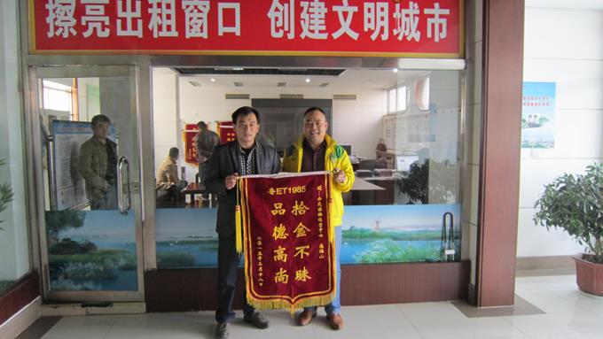3月18日,市民燕先生拿著一面寫有“拾金不昧、品德高尚”的錦旗來到市公交公司出租汽車運營中心,感謝魯ET1985出租汽車駕駛員寇福山師傅拾金不昧的高尚品德。據了解得知,3月16日晚上20時,燕先生乘坐寇福山師傅駕駛的出租車到偉浩假日,下車時將一部價值4000元左右的opp手機落在出租車上。次日,駕駛員寇福山將手機送到運營中心,在運營中心工作人員的幫助下聯系上失主,將手機歸還失主。燕先生握著寇福山的手,非常激動,不住地夸贊并連連表示感謝。出租車駕駛員寇福山告訴燕先生,撿到物品主動上交是我們公交出租汽車駕駛員應該做的,也是我們每名出租車駕駛員應盡的義務。