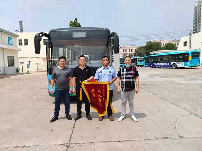 7月11日上午,市民王云峰和家人帶著繡有“見(jiàn)義勇為、英勇救人”的錦旗來(lái)到市公交公司汽車一隊(duì),感謝103路駕駛員商光亮的救人之舉。